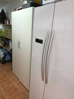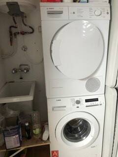 Daar vind je ook een wasmachine en droogkast. En er is ook nog extra diepvriezer en koelkast voorhanden.